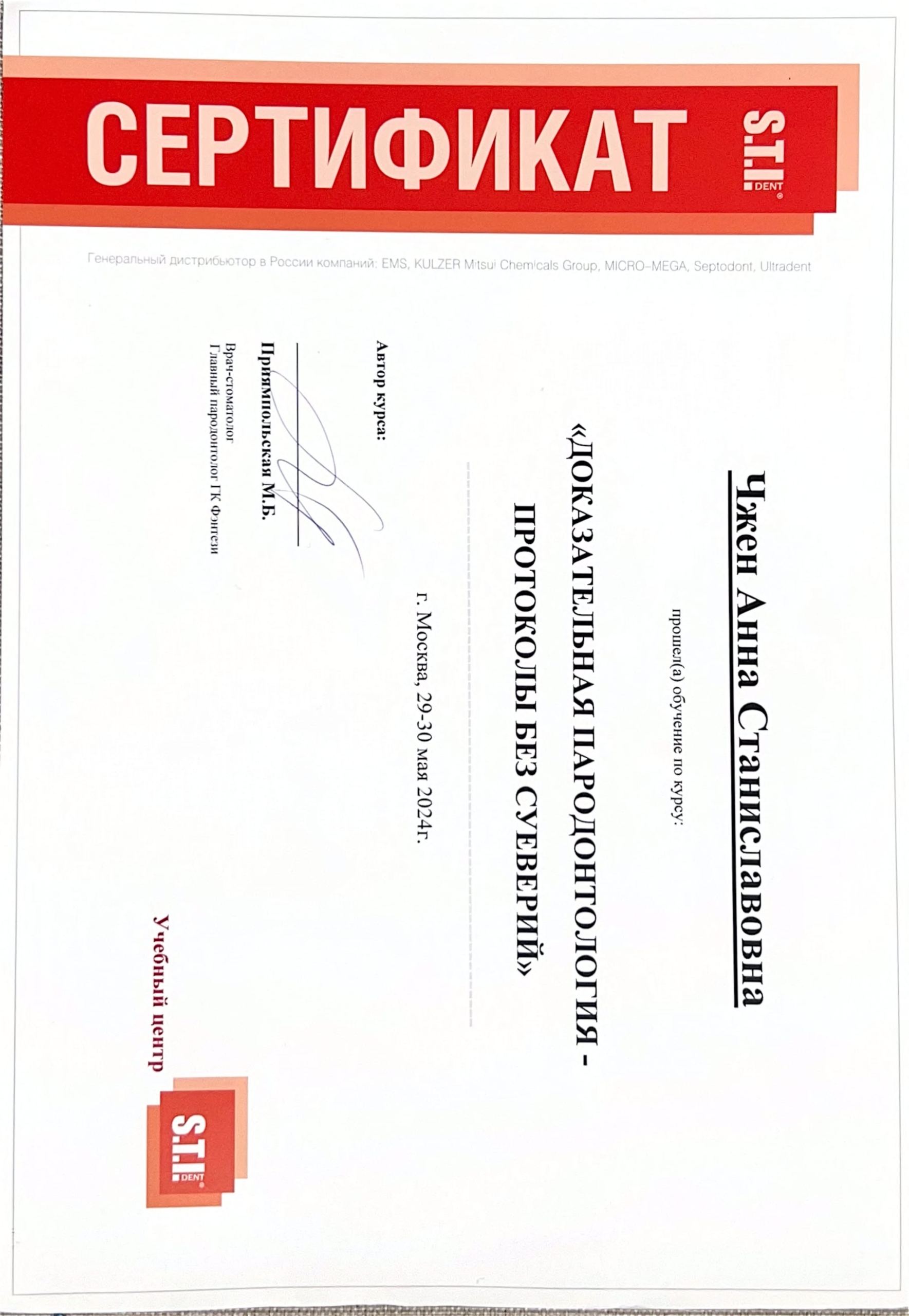 - STI. «Доказательная пародонтология без суеверий» М.Б. Приямпольская, 2024 г.