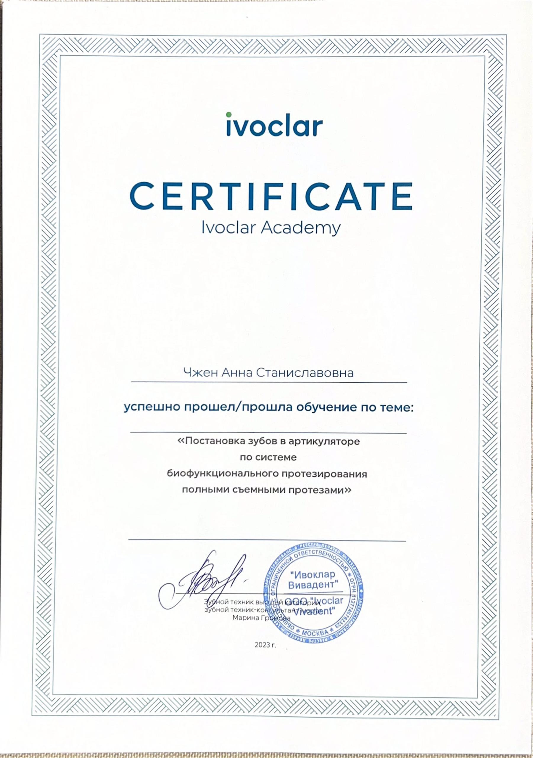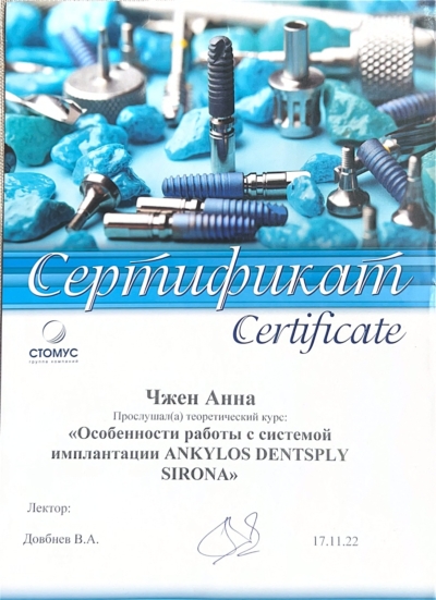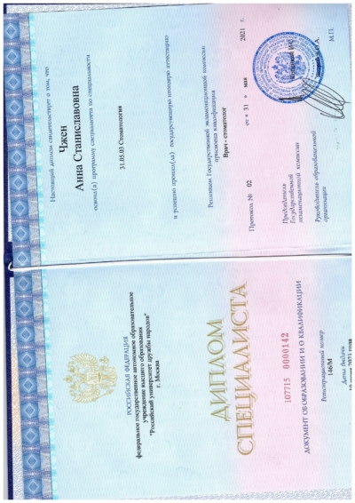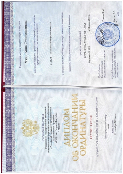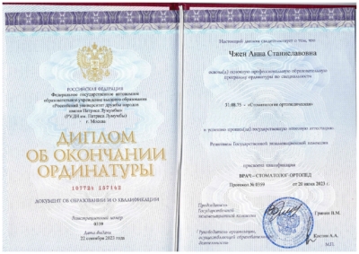 - Ординатура: РУДН / Ортопедическая стоматология, 2023 г.