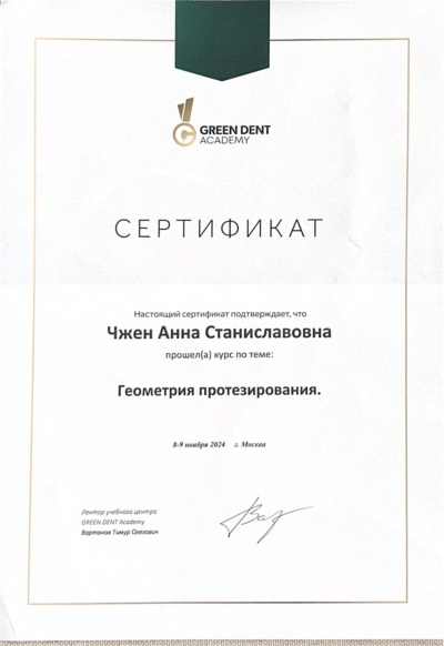 - Green Dent. «Геометрия протезирования» Вартанов Тимур Олегович, 2024 г.