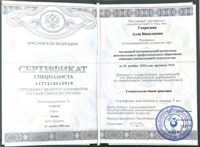 - Ставропольский государственный медицинский институт повышения квалификации КарьераМедиФарм. «Детская стоматология», 2016 г.