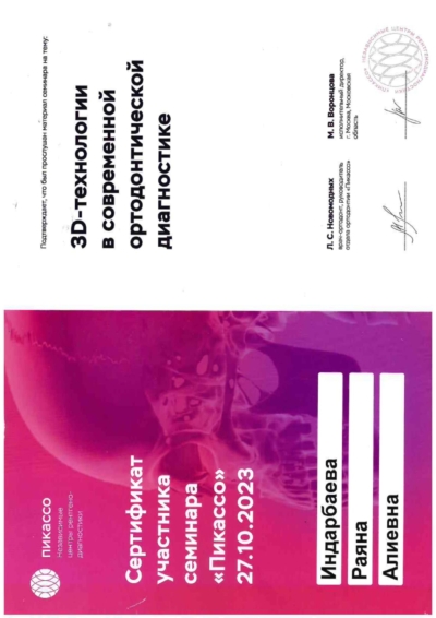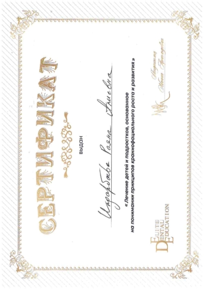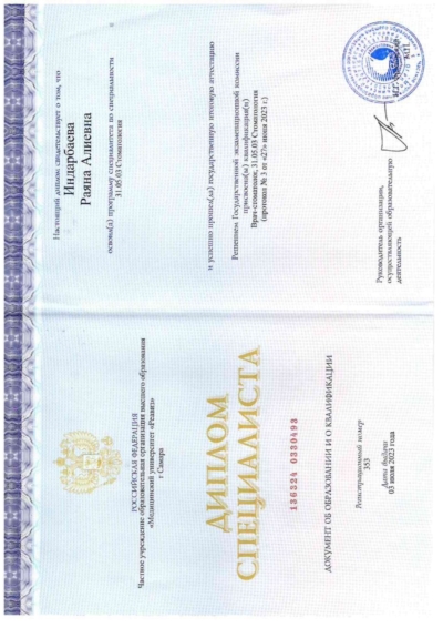 - Ординатура: ФГБНУ Национальный НИР Общественного здоровья имена Семашко/ Ортодонтия, 2025 г.
