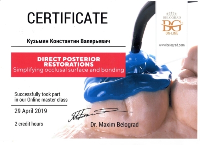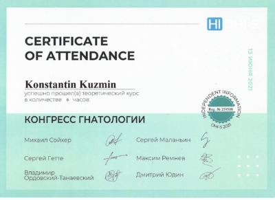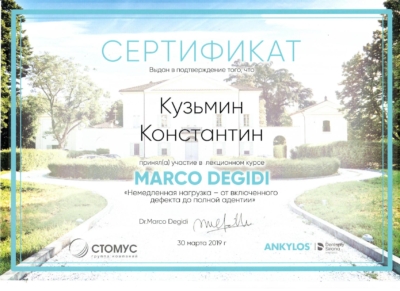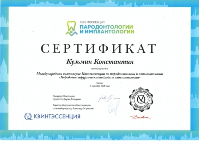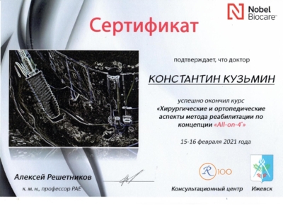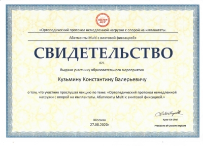 - Федеральное государственное бюджетное учреждение дополнительного профессионального образования «Российская медицинская академия непрерывного профессионального образования» Министерства здравоохранения Российской Федерации. Периодическая аккредитация по специальности «Стоматология ортопедическая», 2022 г.