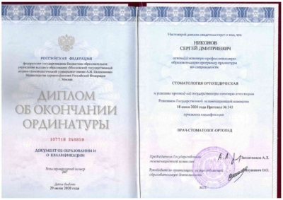 - Ординатура: МГМСУ им. Евдокимова / Ортопедическая стоматология, 2020 г.