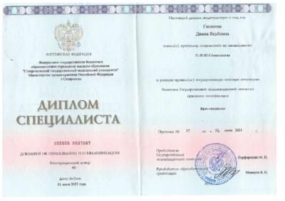 - Ставропольский государственный медицинский университет / Стоматолог-терапевт, 2021 г.