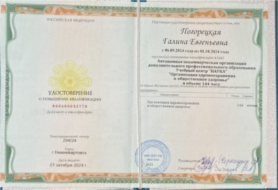 • Профессиональная переподготовка: Уральский технологический университет / Организация здравоохранения, 2019 г.