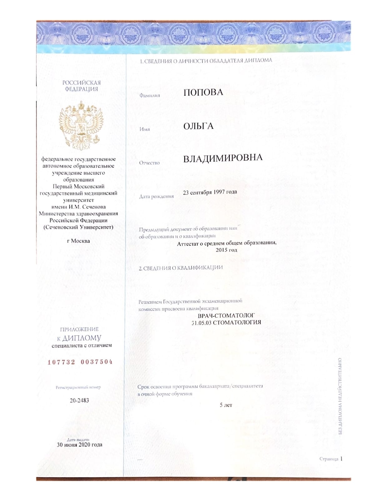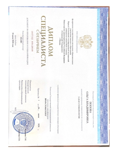 - ФГАОУ ВО Первый МГМУ им. И.М. Сеченова Минздрава России / Стоматология, 2020 г.
