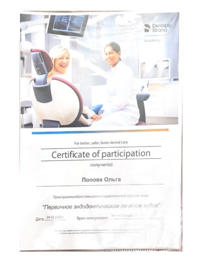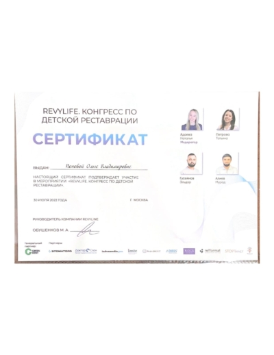 - ФГБОУ ВО МГМСУ им. А.И. Евдокимова. Школа мастерства «Детская стоматология и ортодонтия», 2020 г.