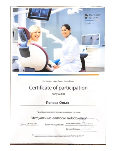 - Лектор В. Степовая. Лекционно-практический курс «Первичное эндодонтическое лечение зубов», 2022 г.