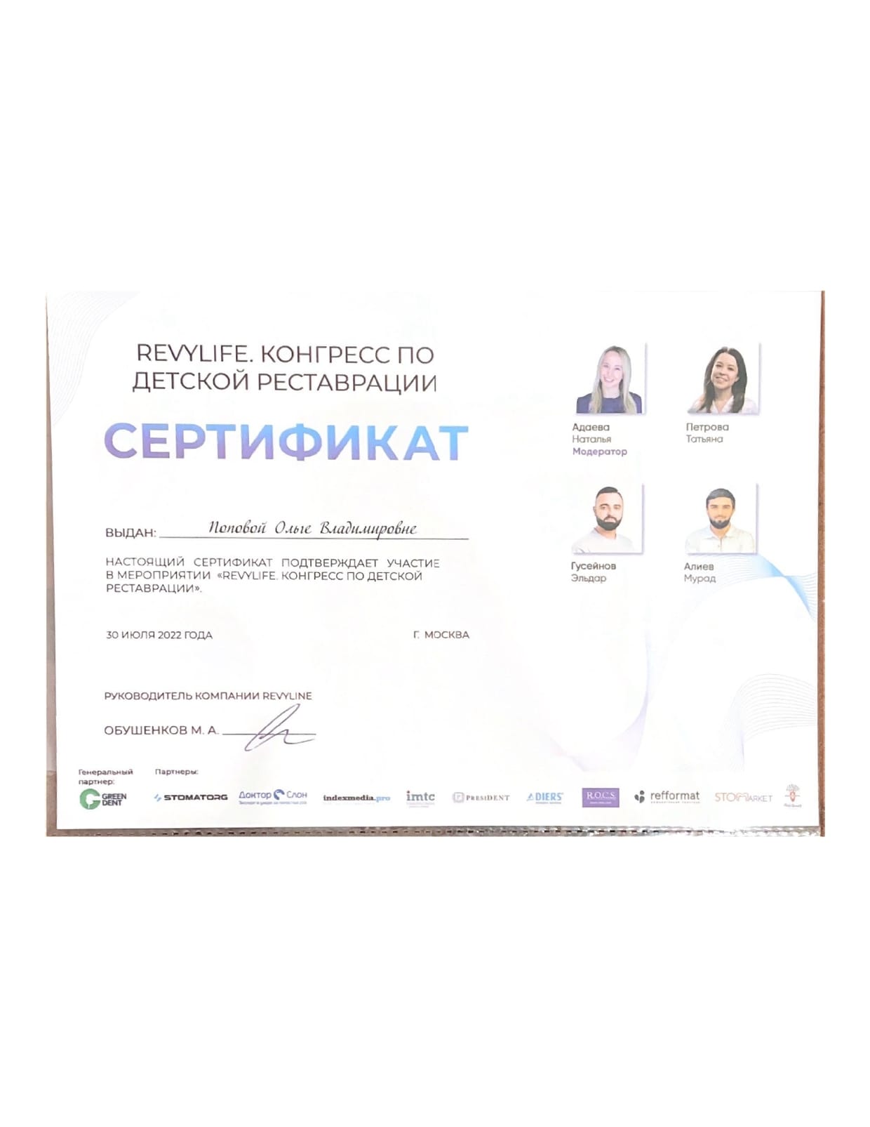 - Модератор Н. Адаева. Конгресс по детской реставрации, 2022 г.