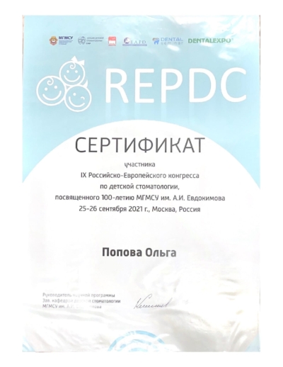 - IX Российско-европейский конгресс по детской стоматологии, 2021 г.