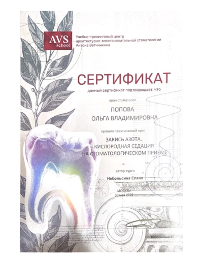 - Е. Небольсина. Практический курс «Закись азота. Кислородная седация на стоматологическом приеме», 2023 г.