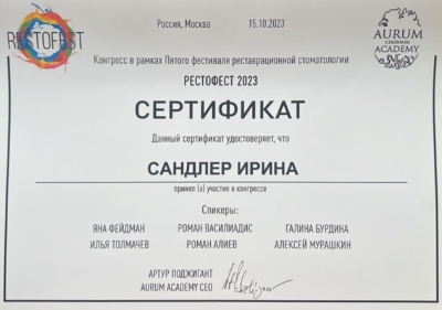 - Сандлер И.В., Амхадова М.А., Хайроев М.М. Состав десневой жидкости как индикатор местных и системных восполительных изменений в организме. АКТУАЛЬНЫЕ ВОПРОСЫ СТОМАТОЛОГИИ. Сборник научных трудов, посвященный основателю кафедры ортопедической стоматологии КГМУ, профессору Исаак Михайловичу Оксману. 2024. 813 – 819.